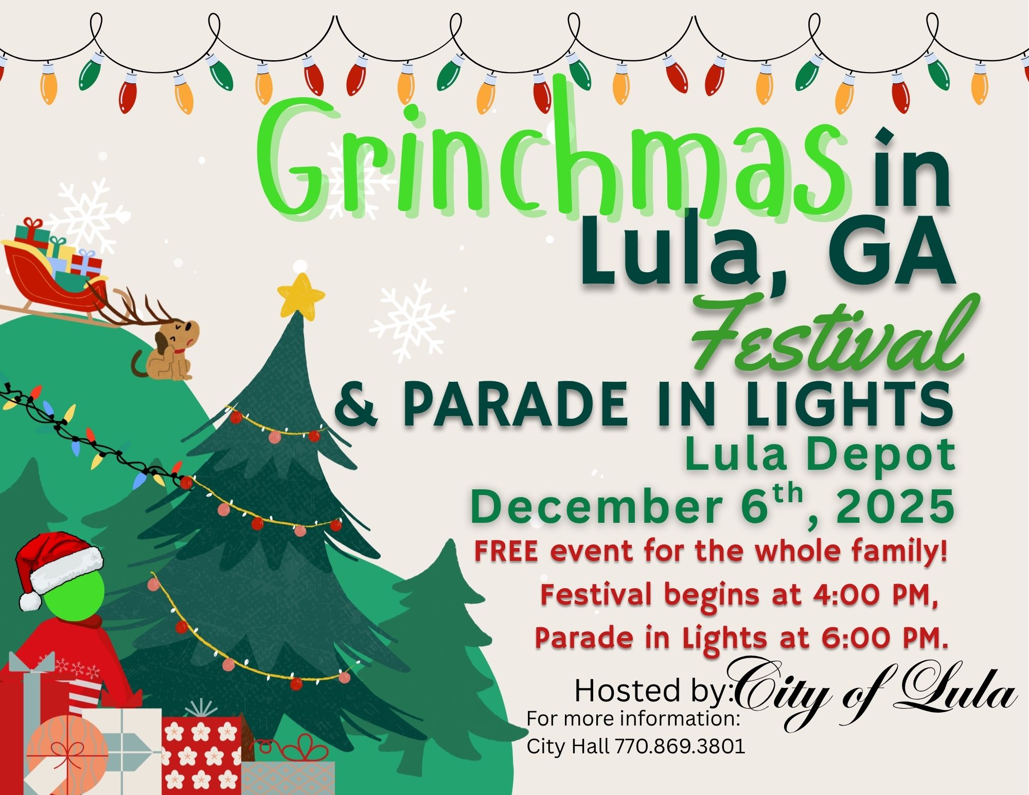 On December 6th, 2025 the City of Lula hosted their annual Christmas Festival and Parade in lights. This year’s theme was “Grinchmas”.