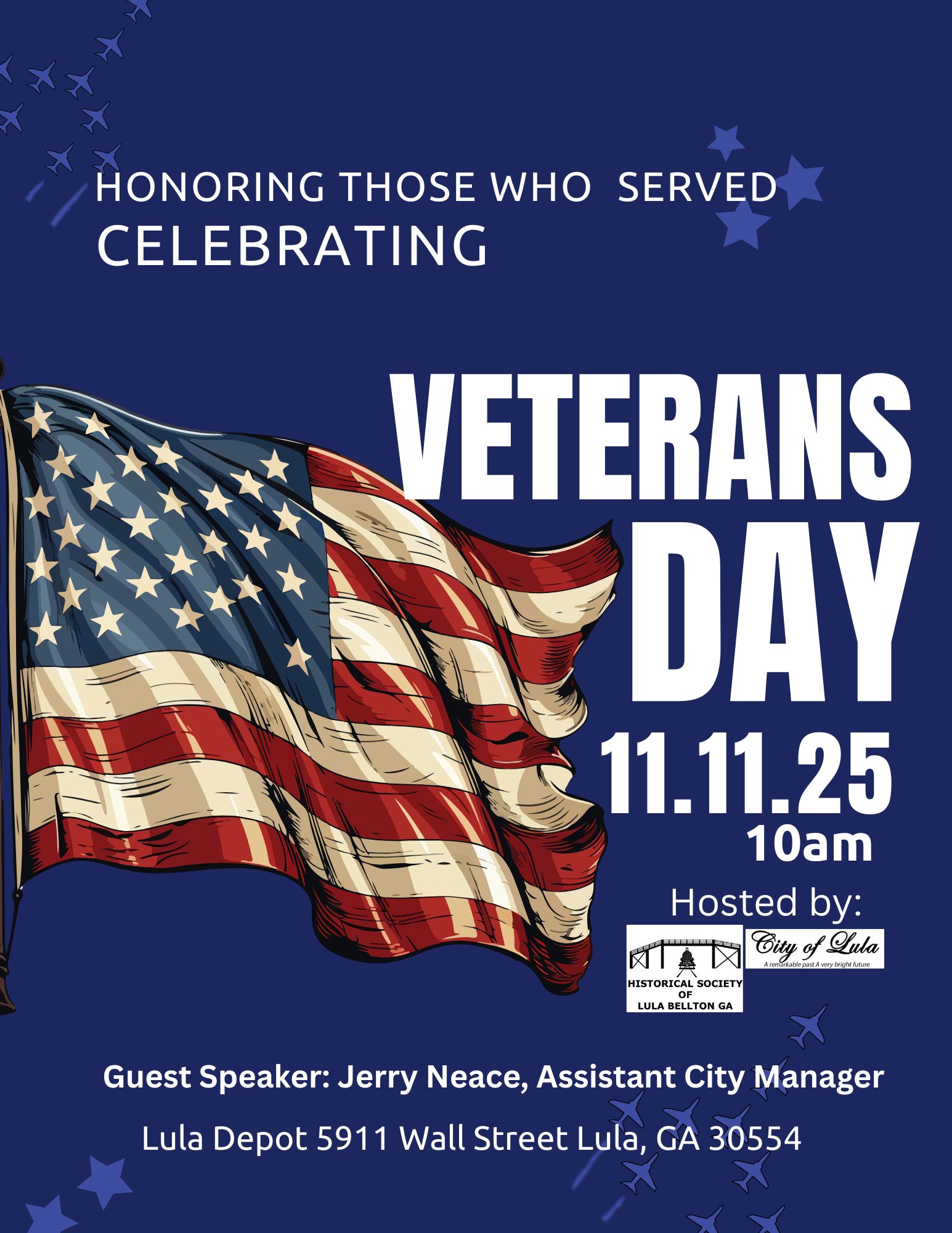 A commemorative display honoring the service men and women of Lula throughout the years will be featured. Refreshments will be provided, and there will be a dedicated time to express gratitude to Veterans present at the event.